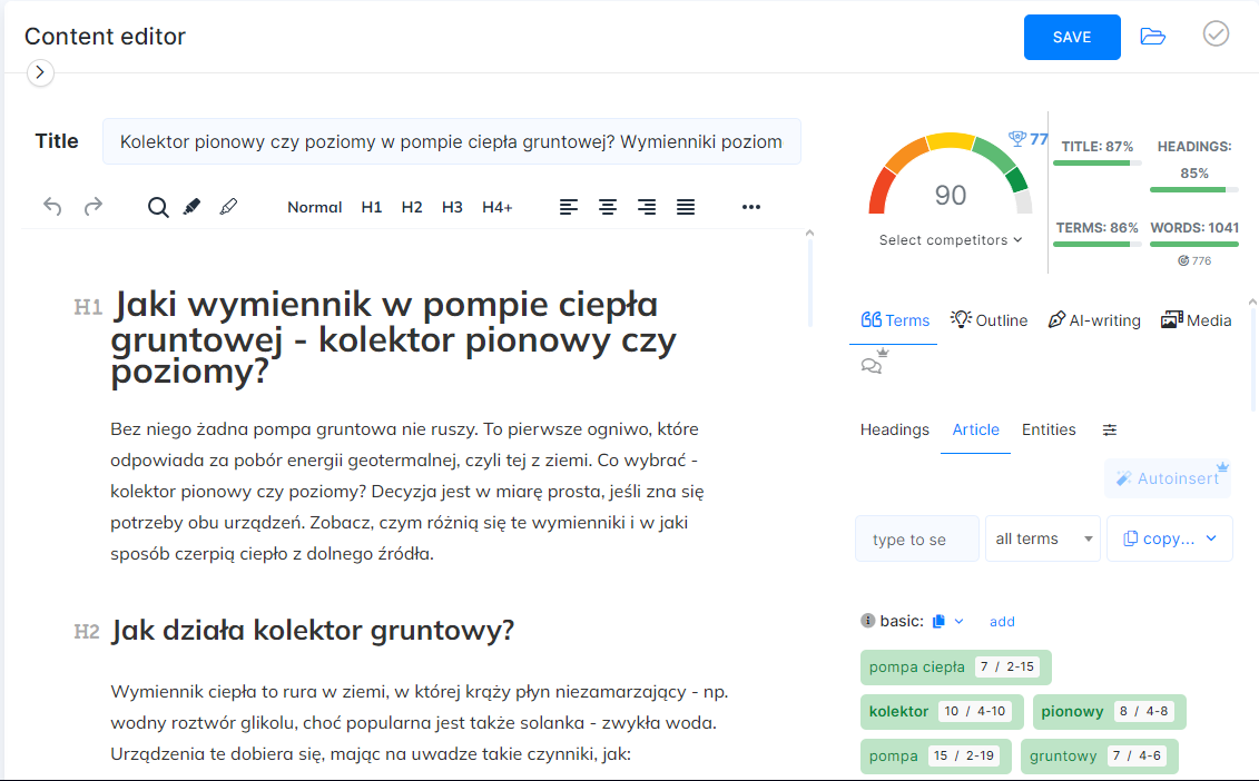 Tekst na bloga – wynik 90% w Contadu, narzędziu do optymalizacji tekstów pod SEO