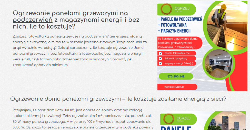 Tekst dla ogrzej.com.pl. Pierwsze miejsce w Google (05.01.2025 r.) na frazy: „ogrzewanie na podczerwień z magazynem energii” i „magazyn energii do paneli na podczerwień”.