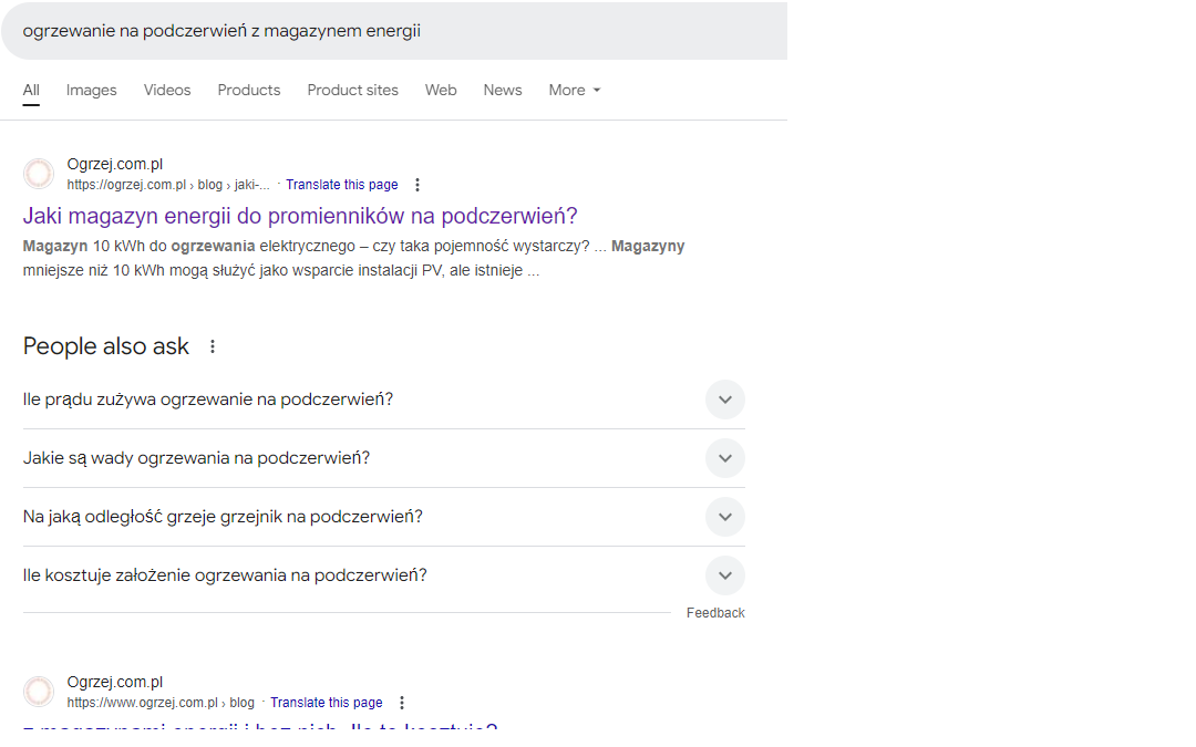 Drugie miejsce w Google na frazę „panele grzewcze czy kocioł gazowy” (05.01.2025 r.).